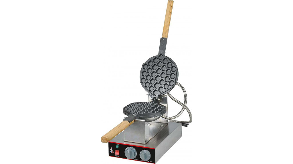 420 × 225 × 290 мм; 1,4 кВт; 220 В; 6 кг; корпус из нержавеющей стали; материал жарочных поверхностей: чугун с антипригарным покрытием; для гонконгских вафель; 30 шариков.
