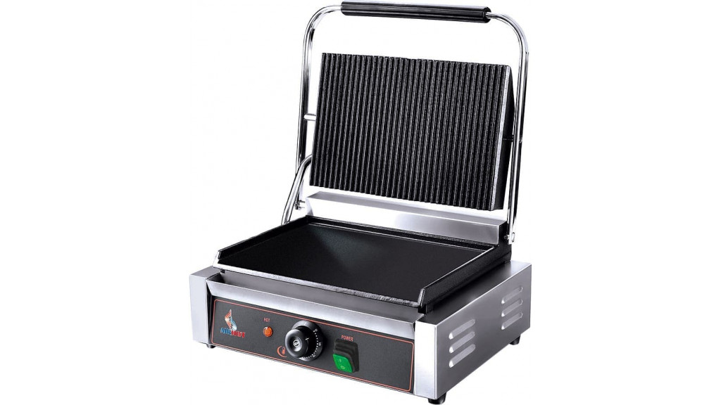 Гриль контактный Airhot CGL-FG позволяет быстро обжарить мясо, птицу, рыбу и другие продукты. Процесс приготовления происходит быстрее благодаря встроенным тэнам, которые плотно прилегают к продукту с двух сторон. Корпус выполнен из нержавеющей стали, жарочная поверхность - из чугуна с антипригарным покрытием. Гриль используется в кафе, в точках фаст-фуда и других предприятий общественного питания.