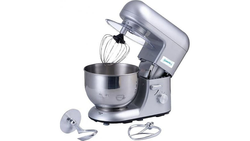 227 × 368 × 350 мм; 220 В; 0,8 кВт; 6,5 кг; настольный; съёмная дежа ёмкостью 5 л; откидная рабочая головка; электромеханическое управление; режим пульсации; 6 позиций регулировки скорости; три насадки в комплекте; корпус изготовлен из прочного ABS-пластика; дежа — из нержавеющей стали.