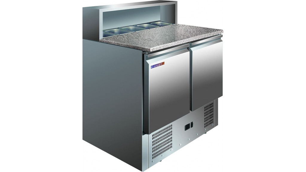 Гранитная столешница; нижнее расположение агрегата; для пяти гастроёмкостей GN 1/6; температурный режим: +2...+8 C°; 220 В; 0,23 кВт; 900 × 700 × 1100 мм; 92 кг.