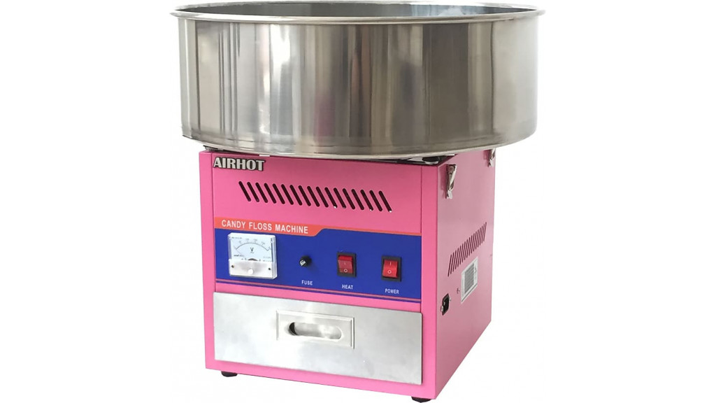 Аппарат для сахарной ваты Airhot CF-1 / розовый используется в кафе, парках, кинотеатрах, торговых центрах. Быстро позволит приготовить в чистом виде сахарную вату, а также вату с добавлением красителей и ароматизаторов. Оборудование простое в эксплуатации, оснащено электромеханической панелью управления. Корпус выполнен из окрашенной стали, чаша-ловитель - из нержавеющей стали.