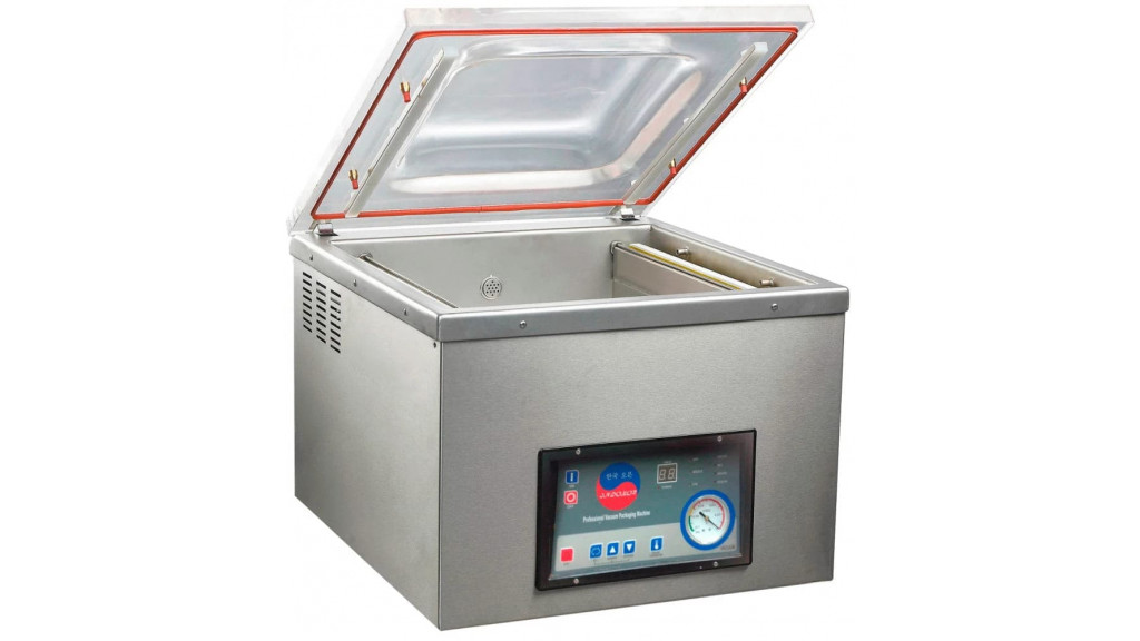 Однокамерный; функция газонаполнения; две сварочных планки; длина планки: 420 мм; ширина сварочного шва: 8 мм; производительность: 1-2 упаковки в минуту; 220 В; 0,9 кВт; 610 × 430 × 580 мм; 36 кг.