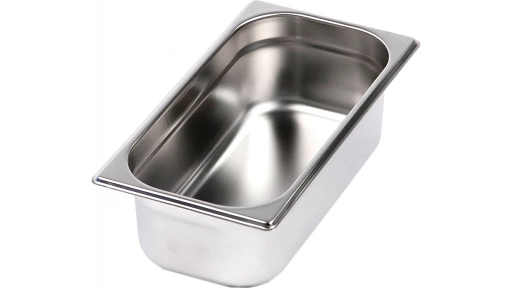 Нержавеющая сталь AISI 201 толщиной: 0,6 мм; 325 × 176 мм; глубина 100 мм.