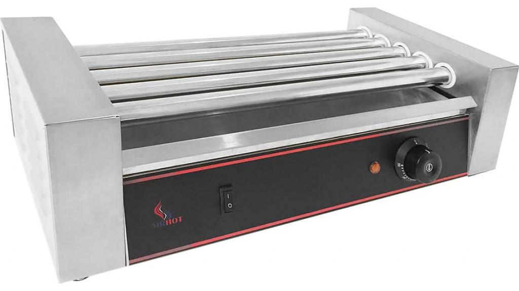 Гриль роликовый Airhot RG-5 равномерно обжаривает со всех сторон сардельки, колбаски и сосиски на предприятиях общественного питания и торговли. Каждый ролик устройства оснащен изнутри ТЭНом. Корпус и ролики выполнены из нержавеющей стали.