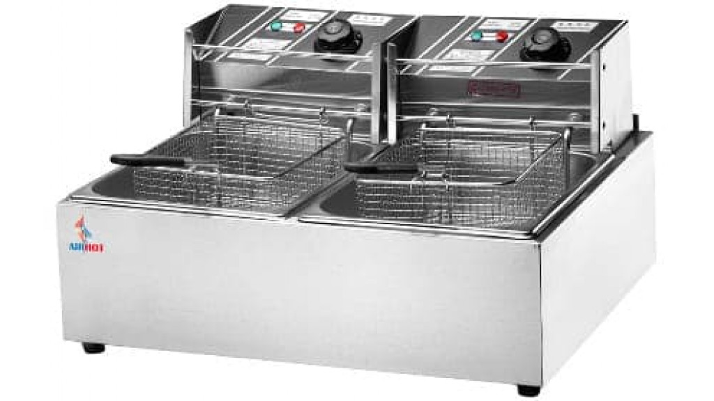 Настольная; электрическая; 2 нерж. ванны объёмом 6 л каждая; 2 корзины (260 × 184 × 108 мм) в комплекте; холодная зона; без крышки; без крана для слива; темп. режим: 60–200 °C; электромеханическое управление; два термостата (рабочий и аварийный); защита от перегрева; без таймера; 220 В; 4,6 кВт; 570 × 450 × 310 мм; 5,3 кг.