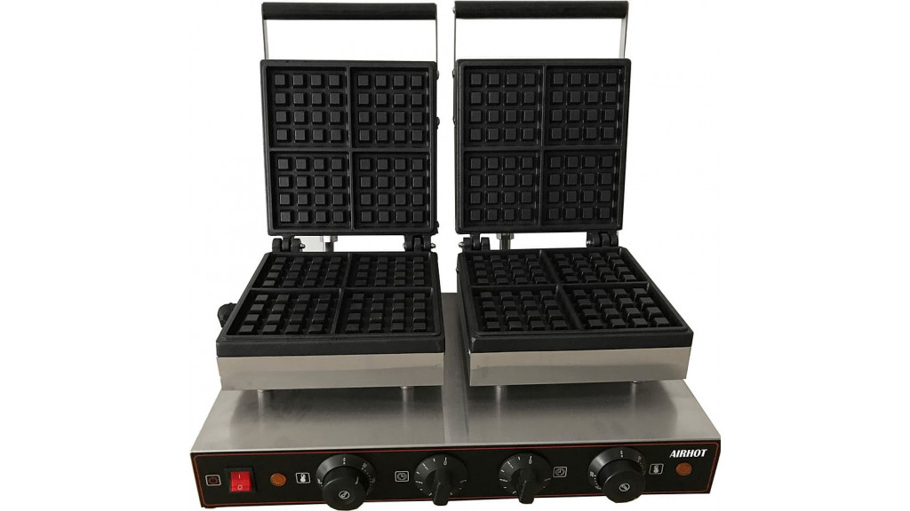 Двойная вафельница для бельгийских вафель Airhot WE-1BD - прекрасный помощник в кафе, фаст-фуда и кофейни. Применяется для приготовления бельгийских вафель квадратной формы. Оборудование простое в эксплуатации и не требует особых навыков в использования. Корпус выполнен из нержавеющей стали, жарочная поверхность - из чугуна с антипригарным покрытием.