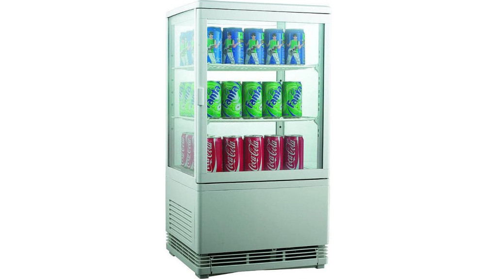 Витрина холодильная Cooleq CW-58 - оборудование для демонстрации и охлаждения напитков и различных продуктов. Модель оснащена 3 хромированными полками, замком и LED-подсветкой.