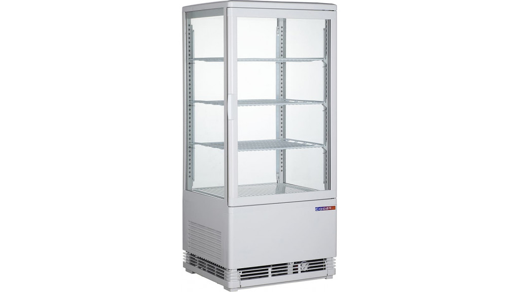 Витрина холодильная Cooleq CW-85 - оборудование для демонстрации и охлаждения напитков и различных продуктов. Модель оснащена 4 хромированными полками, замком и LED-подсветкой.