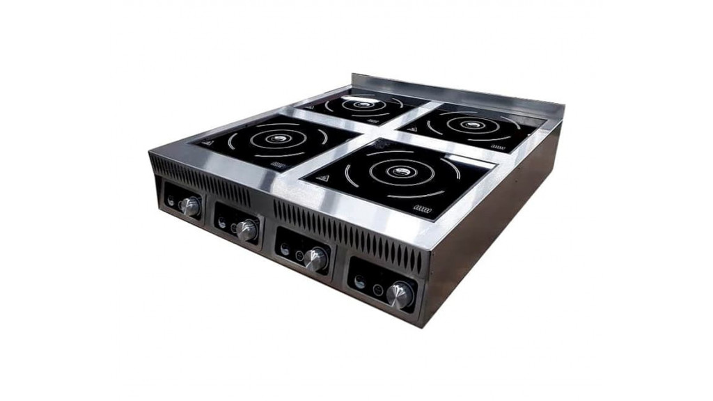 735 × 845 × 220 мм; 14 кВт; 380 В; 33 кг; четыре автономно работающие конфорки; двойная вентиляция; электромеханическое управление; 10 уровней мощности нагрева; температурный режим: 60…240 °С; защита от перегрева; корпус из нержавеющей стали.