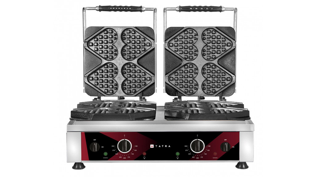 Вафельница Tatra TWI 2 Tiamo / сердце используется для приготовления вафель в форме сердца на предприятиях общественного питания и торговли. Модель оснащена двумя зонами выпечки и терморегулятором. Корпус выполнен из нержавеющей стали, несъемные рабочие поверхности - из чугуна.