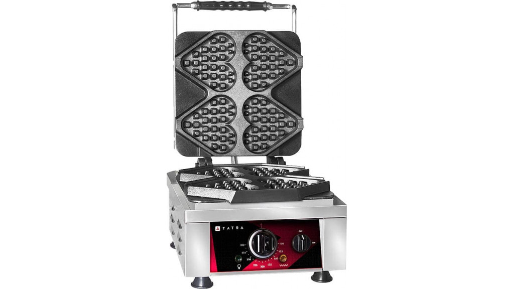 Вафельница Tatra TWI 1 Tiamo / сердце используется для приготовления вафель в форме сердца на предприятиях общественного питания и торговли. Модель оснащена одной зоной выпечки и терморегулятором. Корпус выполнен из нержавеющей стали, несъемные рабочие поверхности - из чугуна.
