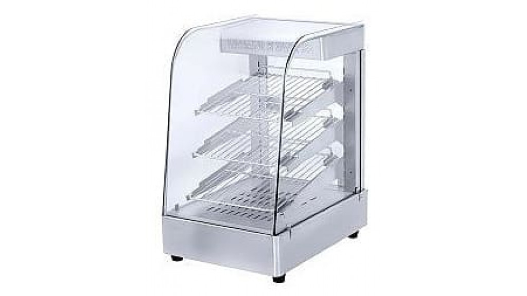 370 × 455 × 580 мм; 220 В; 1 кВт; 21 кг; температурный режим: 30…85 °C; материал корпуса: нержавеющая сталь; три наклонные полки-решётки, подсветка.