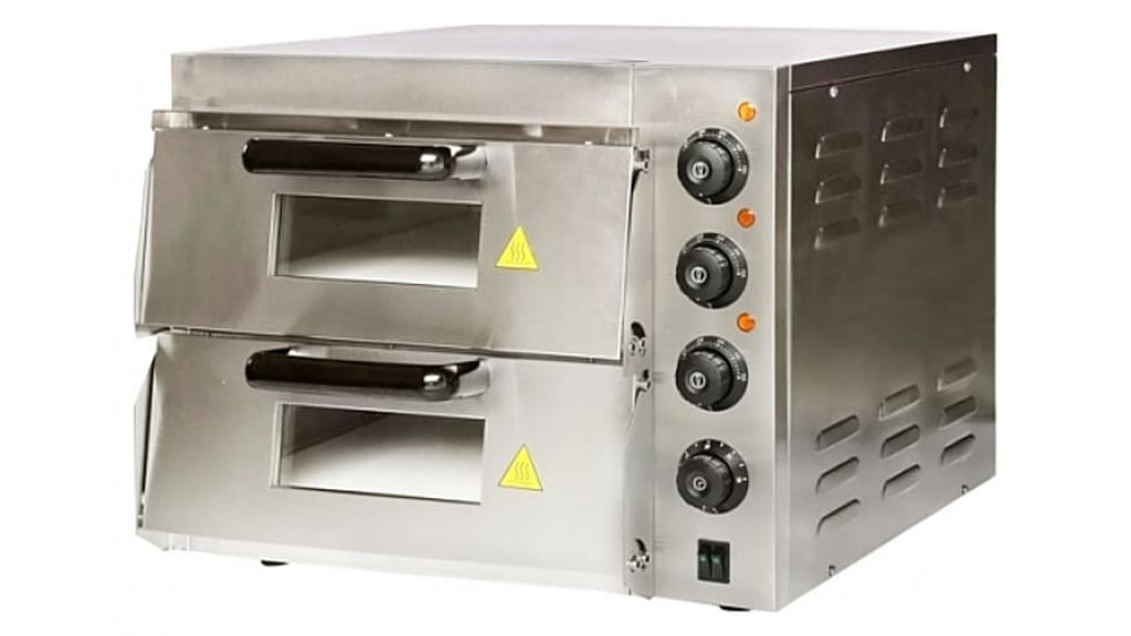 560 × 486 × 430 мм; 220 В; 3 кВт; 33 кг; температурный режим: 0…300 °C; электромеханическое управление; две камеры; внутренний размер одной камеры: 415 x 400 x 120 мм; таймер со звуковым сигналом; каменный под в нижней части камеры; корпус из нержавеющей стали.