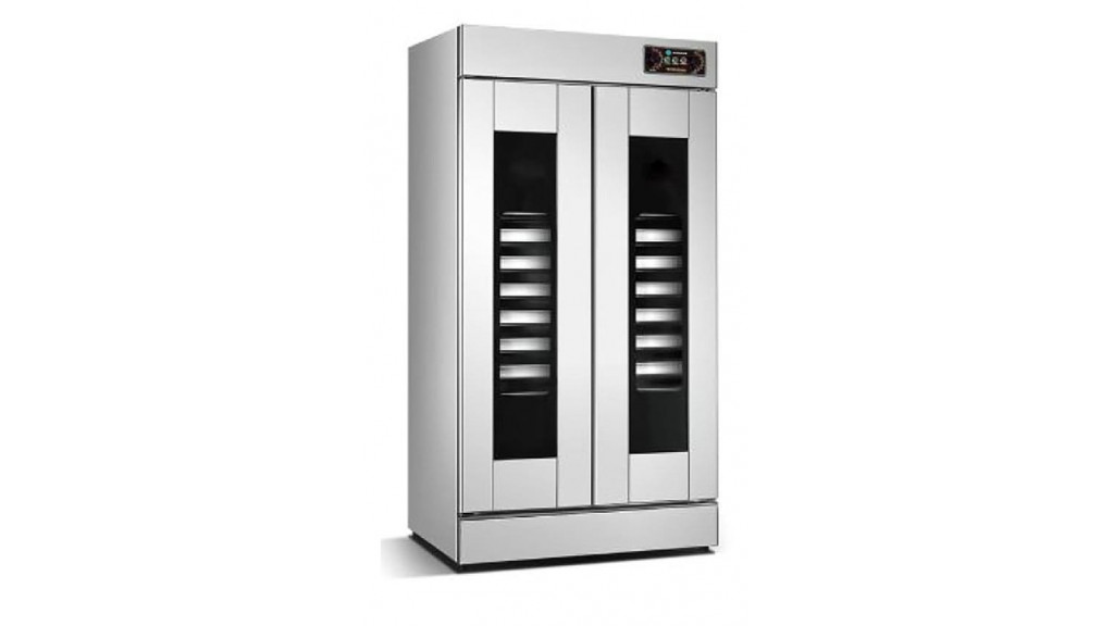 32 уровня; температурный режим: +30…+110 °C; размер противней: 600 × 400 мм; 220 В; 2,8 кВт; 1000 × 680 × 1660 мм.