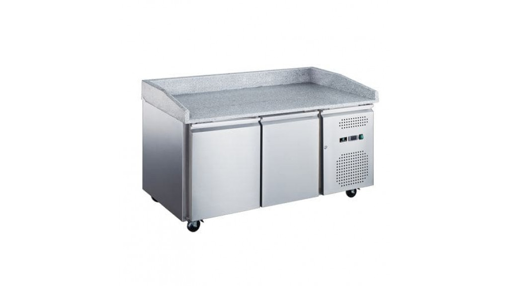 Гранитная столешница; с бортом; боковое расположение агрегата; две двери; температурный режим: -2...+8 C°; 220 В; объём: 370 л; 0,35 кВт; 1400 × 700 × 1455 мм; 162 кг.