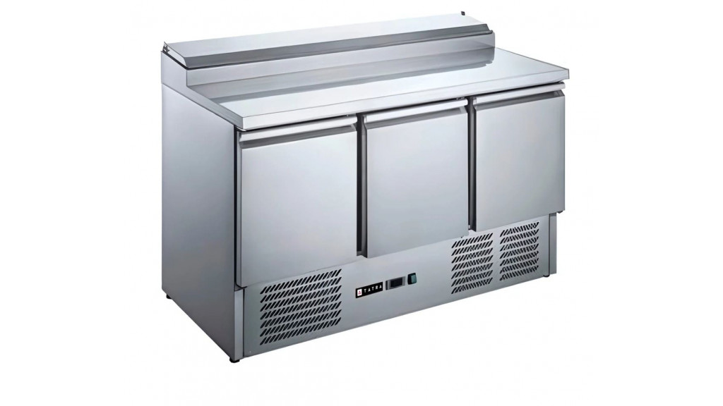 Стол для пиццы Tatra TPZGNL3 VC предназначен для раскатывания теста, обработки ингредиентов для готовки, охлаждения и хранения продуктов в заведениях общественного питания и торговли.