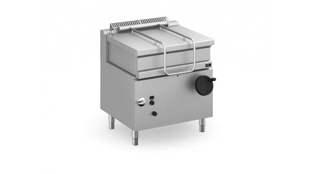 Модель оснащена удобным винтовым механизмом опускания и подъема чаши, горелками с пьезоэлектрическим поджигом, датчиком безопасности, отключающим нагрев во время опрокидывания. Корпус выполнен из нержавеющей стали AISI 304, горелки - из нержавеющей стали.