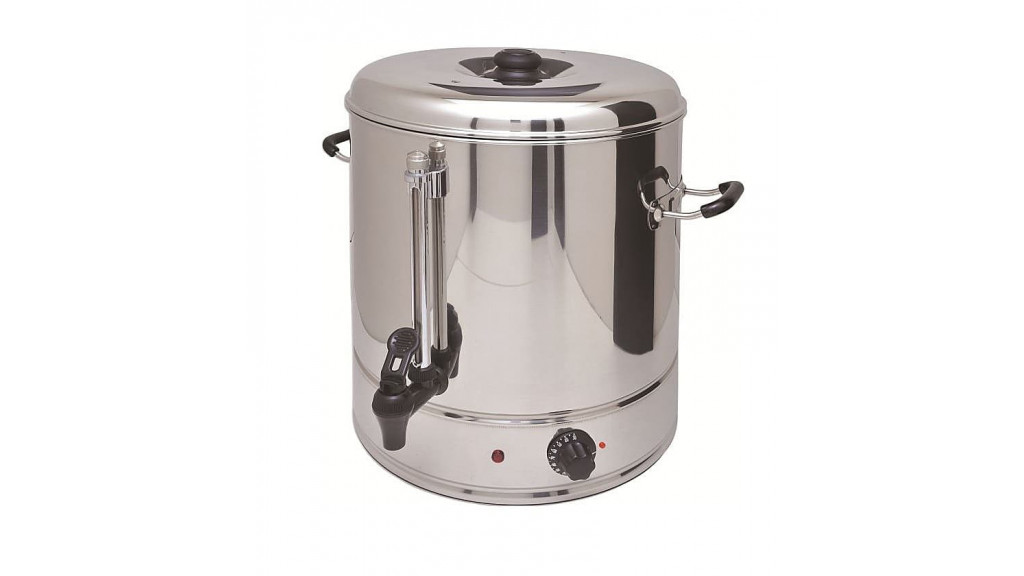 380 × 380 × 410 мм; 220 В; 3 кВт; 4,2 кг; полезный объём: 30 л; накопительный; ручной залив воды; индикатор уровня воды; режим поддержания тепла; температурный режим: 30…110°С; электромеханическое управление; крышка без крепления к корпусу; корпус из нержавеющей стали.