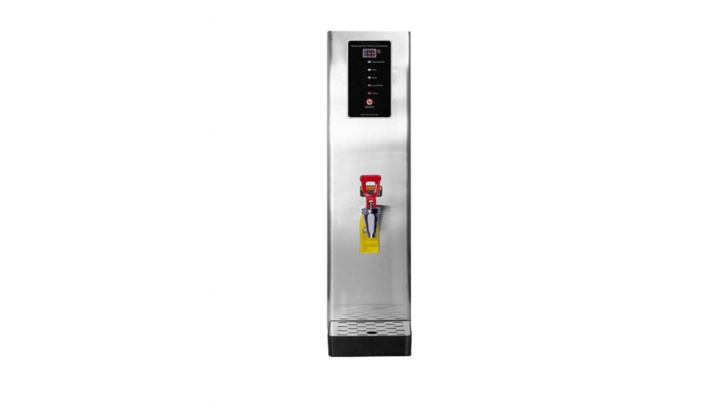 190 × 360 × 640 мм; 220 В; 2,5 кВт; 6,8 кг; полезный объём: 10 л; проточный; подключение к водопроводу; каплесборник; автоматический контроль уровня и температуры воды; индикация нагрева; режим поддержания тепла; температурный режим: 40…99°С; электронное управление; корпус из нержавеющей стали.