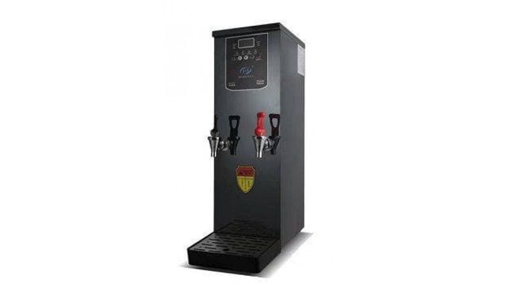 270× 220 × 500 мм; 220 В; 2,5 кВт; 4,6 кг; два крана; полезный объём: 8 л; проточный; подключение к водопроводу; индикатор уровня и нагрева воды; автоматический контроль уровня и температуры воды; электронное управление; корпус из крашеной нержавеющей стали.