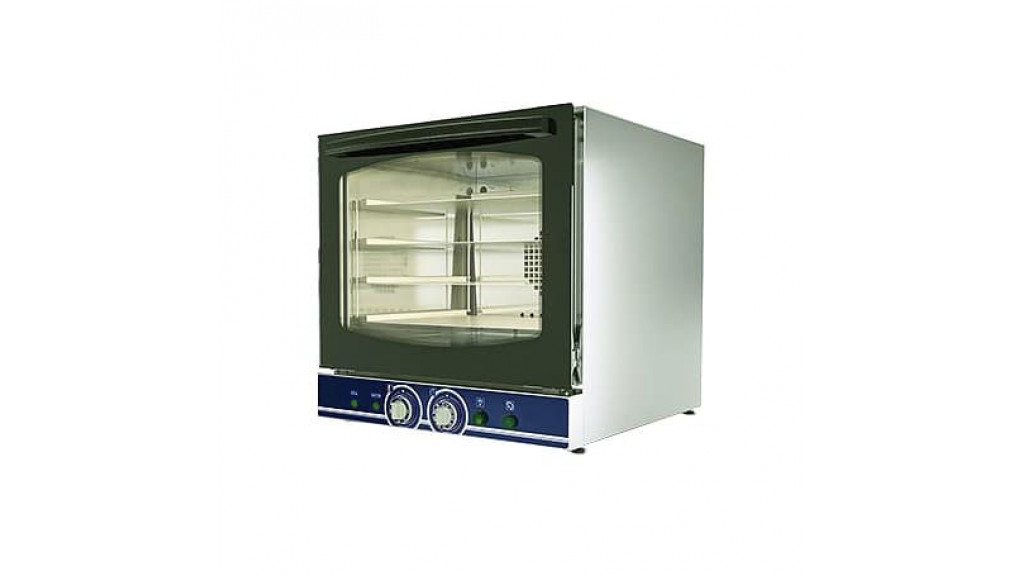 560 × 650 × 585 мм; 220 В; 3,1 кВт; 34 кг; электрическая; система пароувлажнения; подключение к воде; электромеханическое управление; температурный режим: 60…270 °C; 4 уровня; расстояние между уровнями: 75 мм; размер противня: 430 х 330 мм; корпус из нержавеющей стали; откидывающаяся дверца из термостойкого двойного стекла.