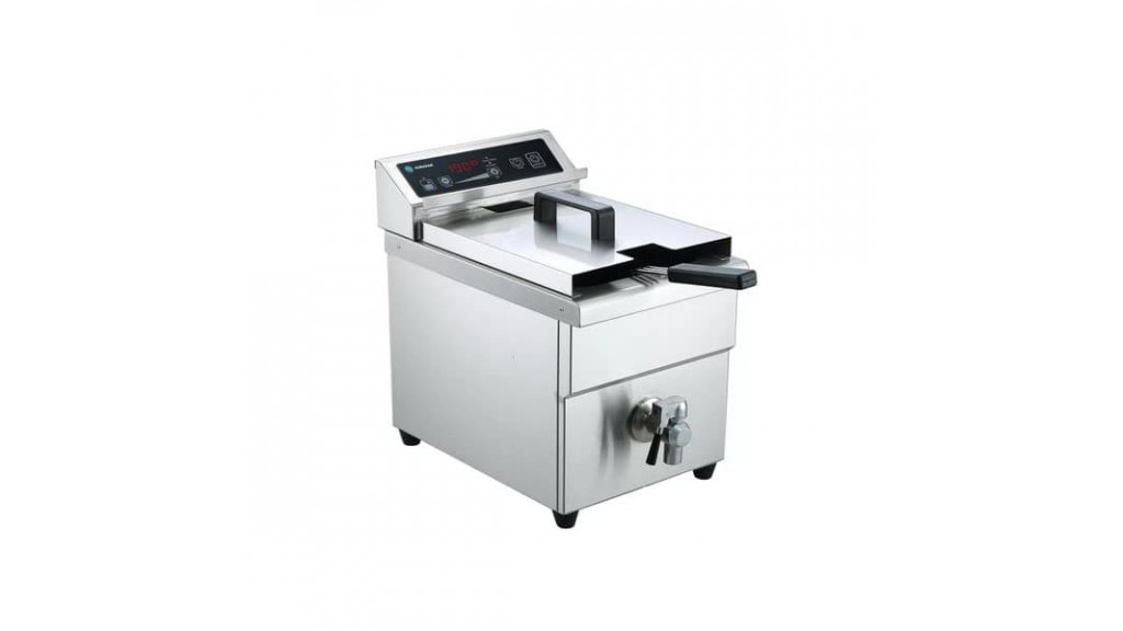 478× 288 × 410 мм; 3,5 кВт; 220 В; 6,2 кг; одна ванна объёмом 8 л; сенсорное управление; температурный режим: 60…190 °С; кран для слива; корпус из нержавеющей стали.