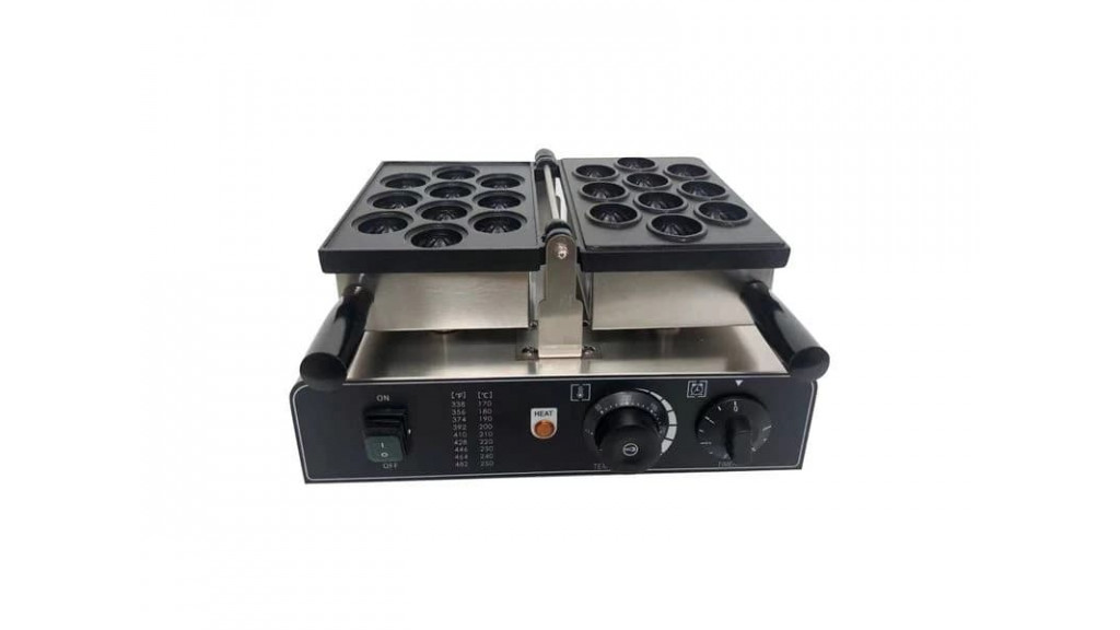 Вафельница Hurakan HKN-GES230 NUT используется в кафе, ресторанах и магазинах для приготовления вафель в форме орешков.