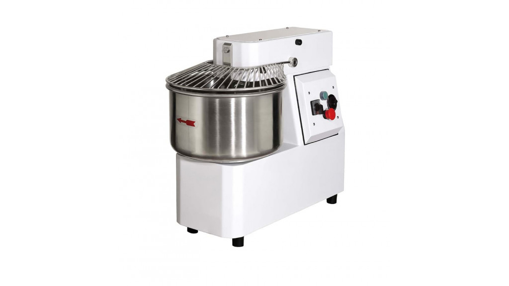 Не для крутого теста; объём дежи: 62 л; максимальный замес теста: 50 кг; две скорости; спиральный; фиксированная дежа; неподъемная траверса; таймер; колёса; производительность: 188 кг/ч; 380 В; 2,2 кВт; 560 × 880× 650 мм; 97 кг.