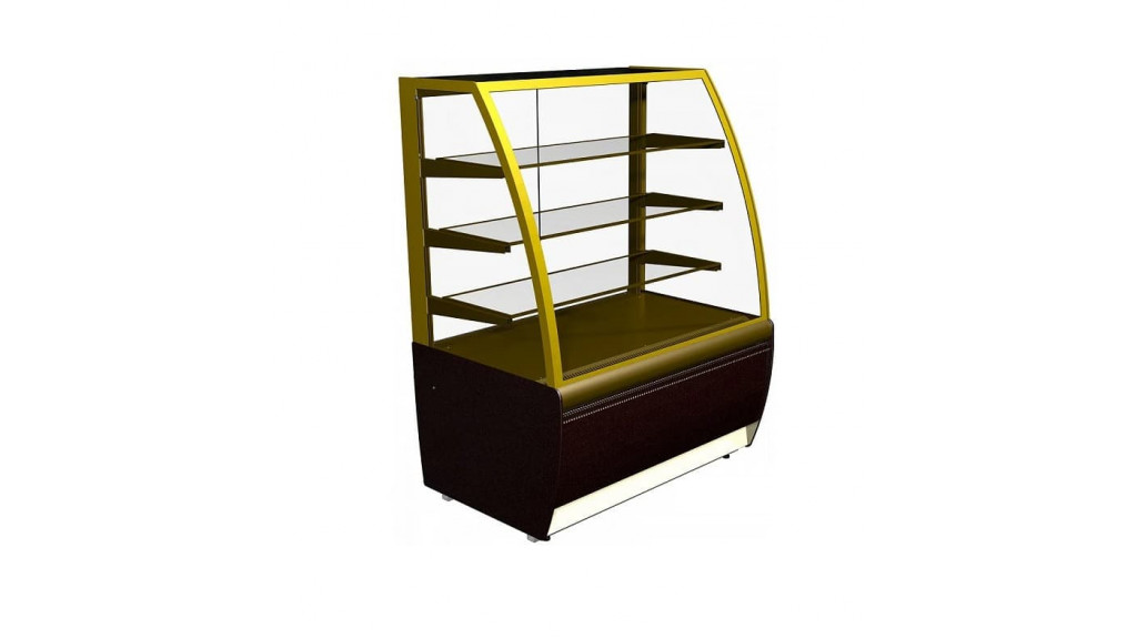 Витрина оснащена тремя решетчатыми полками и LED-подсветкой, что позволяет создавать эффектный внешний вид продуктов.