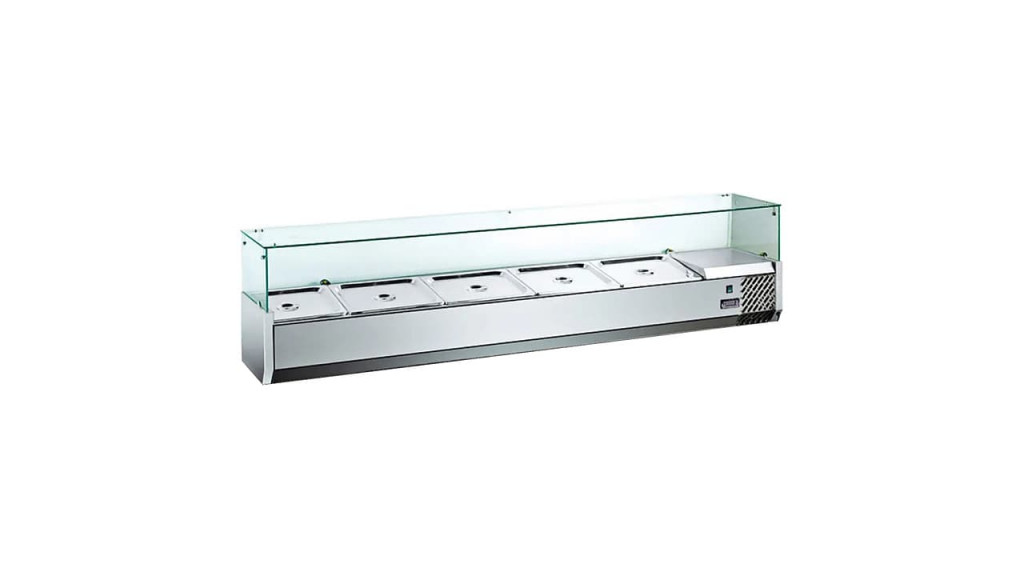 Витрина холодильная настольная Hurakan HKN-VRX1500/330 используется для демонстрации, охлаждения и краткосрочного хранения закусок, салатов, ингредиентов для пиццы и других скоропортящихся продуктов на предприятиях общественного питания и торговли.