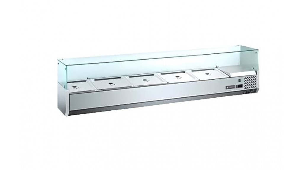Настольная; температурный режим: +2...+8 C°; вместимость: 8 х GN 1/4; боковое расположение агрегата; 220 В; 0,11 кВт; 1800 × 335 × 435 мм; 35 кг.