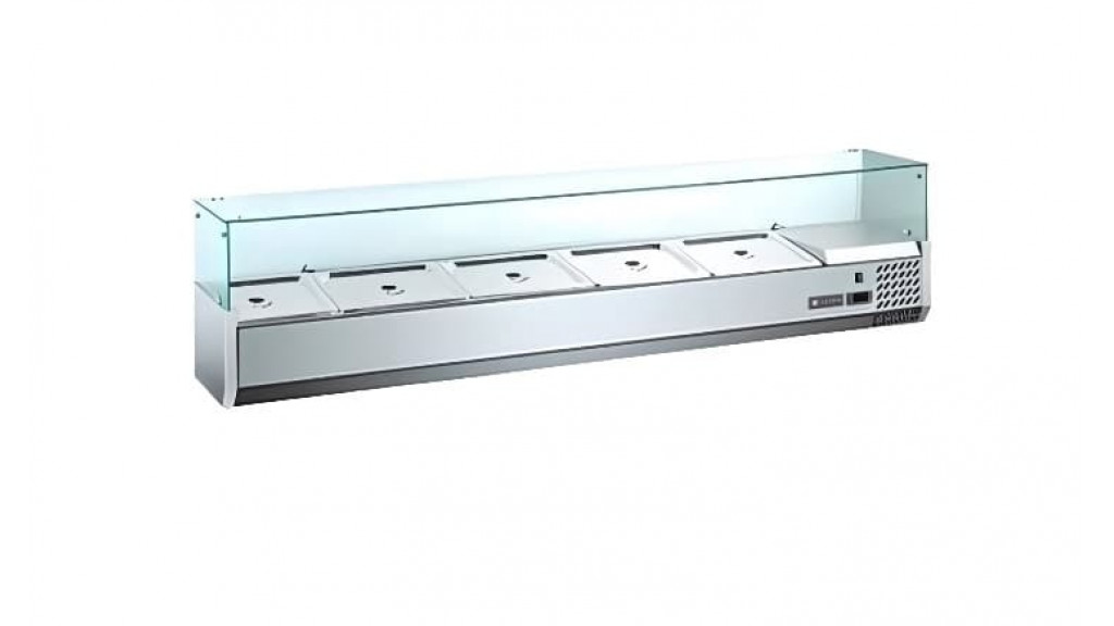 Настольная; температурный режим: +2...+8 C°; вместимость: 10 х GN 1/4; боковое расположение агрегата; 220 В; 0,11 кВт; 2000 × 335 × 435 мм; 38 кг.