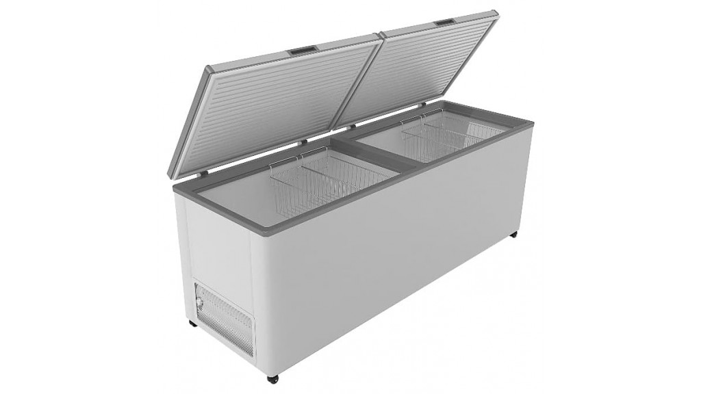 Температурный режим: -22…-18 C°; объём: 660 л; четыре корзины; глухая двойная откидная крышка; 220 В; 0,24 кВт; 2000 × 600 × 840 мм; 91 кг.