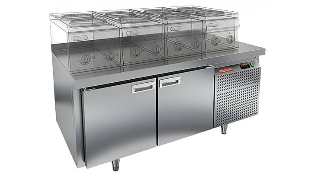 Температурный режим: -2…+10 C°; две двери; боковое расположение агрегата; возможность использования гастроемкости вместо полок; динамическое охлаждение; 220 В; 0,22 кВт; 1390 × 700 × 675 мм; 255 л; 90 кг.