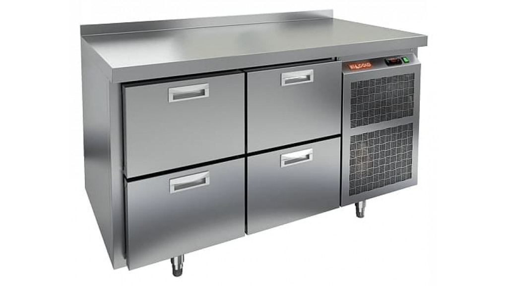 Температурный режим: -2...+10 C°; четыре выдвижных ящика; боковое расположение агрегата; возможность использования гастроемкости вместо полок; динамическое охлаждение; 220 В; 0,22 кВт; 1390 × 700 × 850 мм; 350 л; 95 кг.