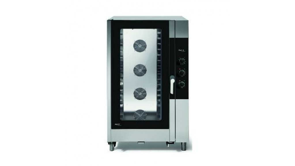 Инжекторный; электромеханическое управление; 40 уровней под гастроёмкости GN 1/1 (20 под GN2/1); температурный режим: 30–260 °C; термощуп; 380 В; 43,6 кВт; 1051 × 1248 × 1887 мм; 290 кг.