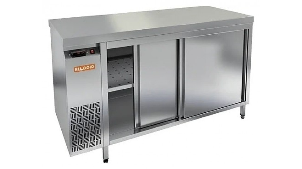 Модель оснащена дверями типа «купе». Нагрев осуществляется с помощью электрического нагревателя (ТЭНа). Конструкция стола предотвращает нагрев внешних поверхностей, так как двойные стенки корпуса и дверок сохраняют заданную температуру и защищают лицевые поверхности от нагрева.