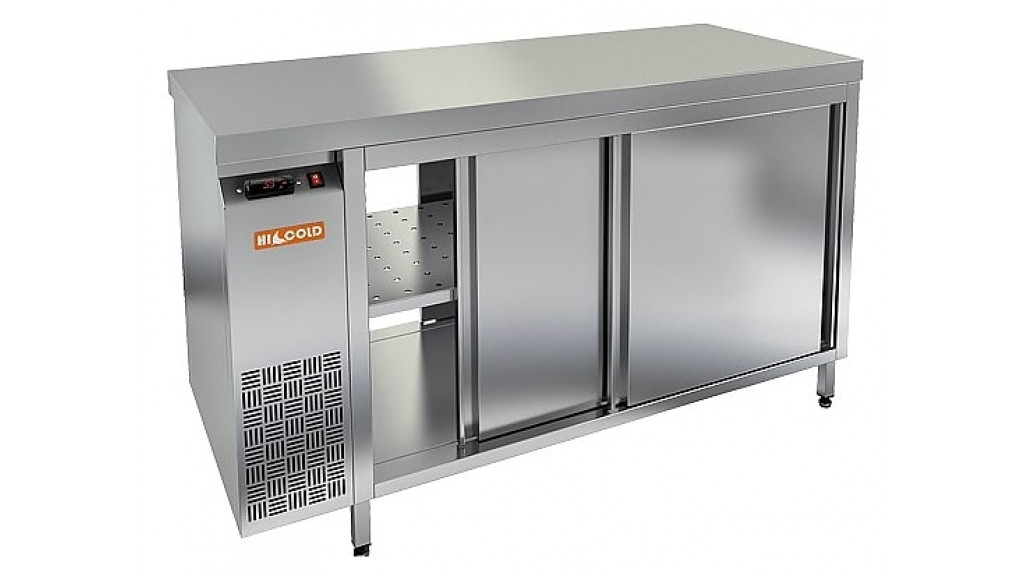 Модель оснащена дверями типа «купе». Нагрев осуществляется с помощью электрического нагревателя (ТЭНа). Конструкция стола предотвращает нагрев внешних поверхностей, так как двойные стенки корпуса и дверок сохраняют заданную температуру и защищают лицевые поверхности от нагрева.