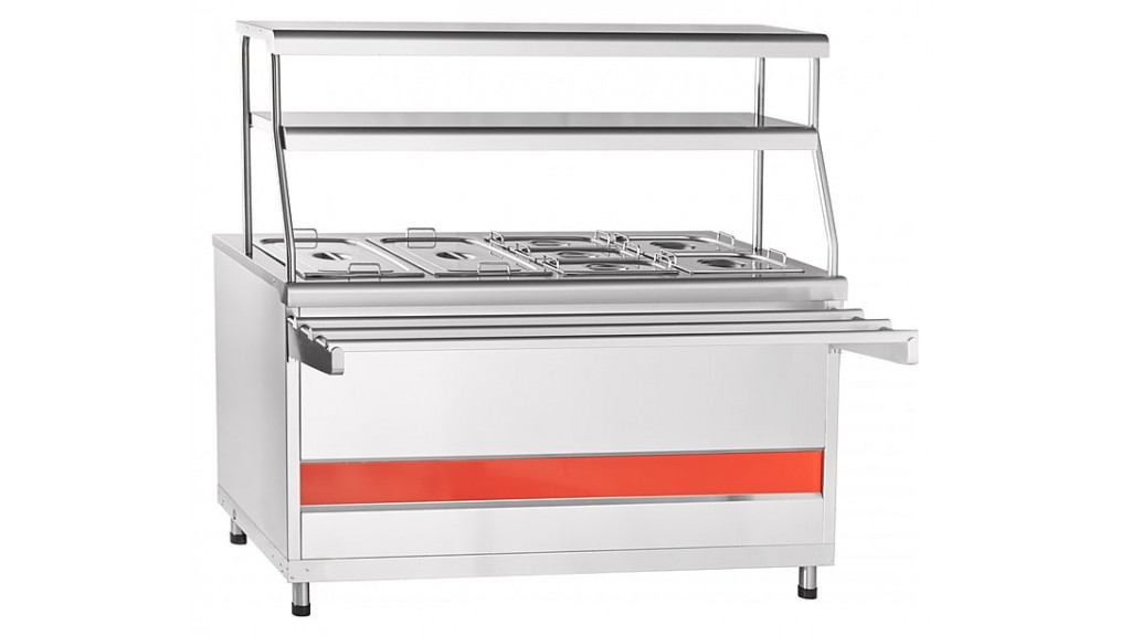 - над мармитом расположена двойная полка с подсветкой, предназначенная для выкладки блюд.