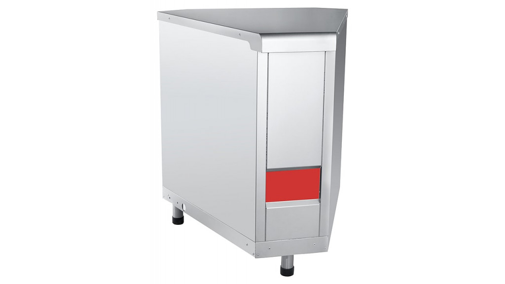 Модуль имеет корпус сложной формы, напоминающей призму. Оборудование состоит из основания, которое обшито листовой нержавеющей сталью. Узкая передняя стенка не нарушает линию направляющих для подносов всего комплекта оборудования.