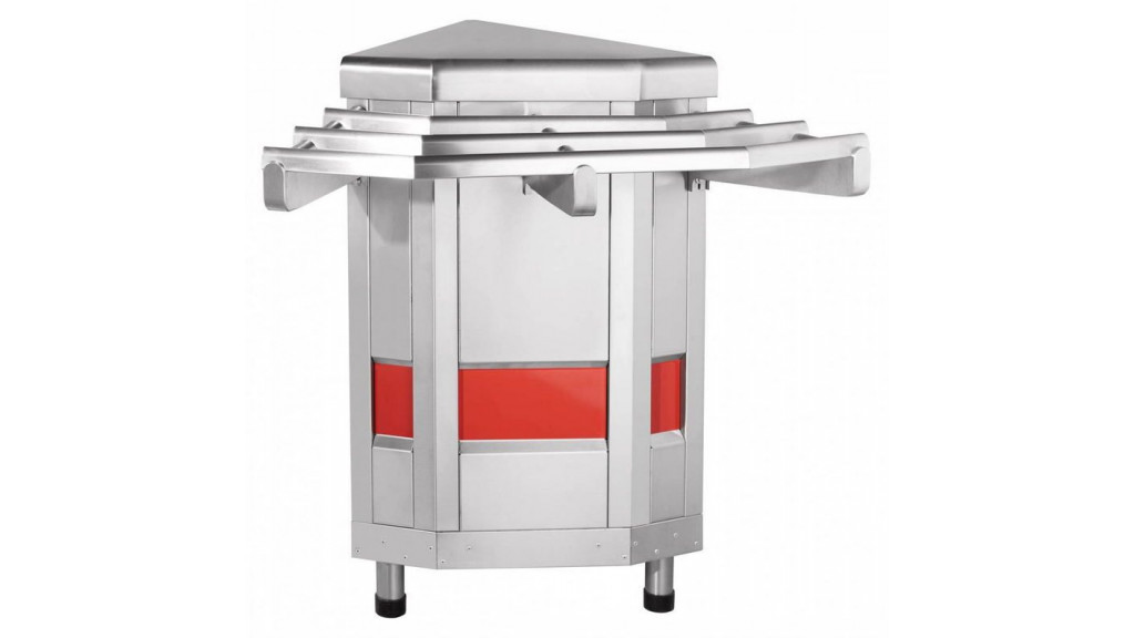 Модуль используется для соединения элементов технологической линии самообслуживания «Аста». Оборудование имеет форму сектора и полностью выполнен из нержавеющей стали. Для устойчивости модуль оснащён регулируемыми по высоте ножками.