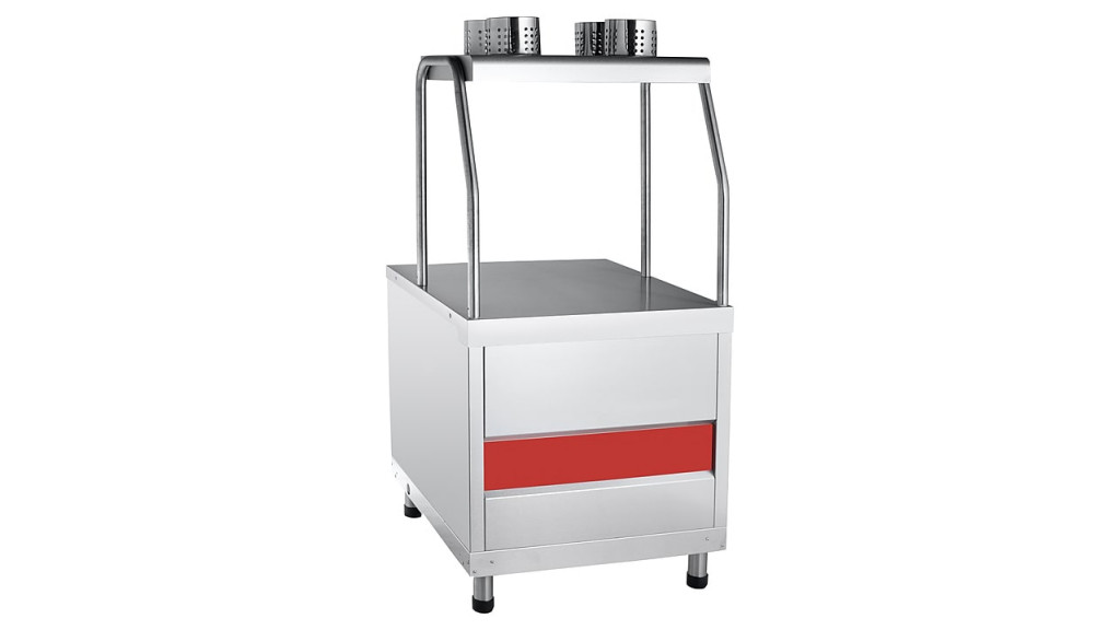 Благодаря отсутствию задней стенки, образуется большое пространство для размещения кухонного инвентаря. Сверху корпус накрыт плоской столешницей, предназначенной для подносов.