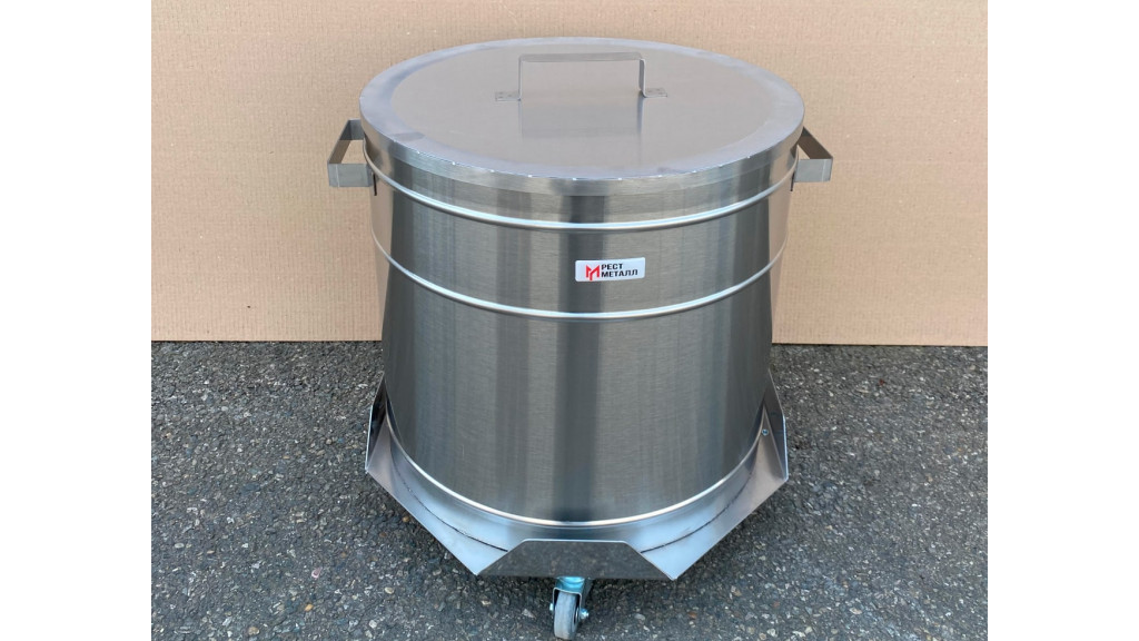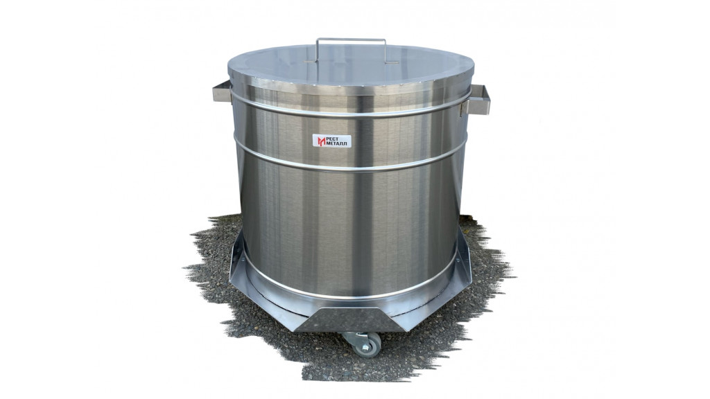 Тележка-бак для отходов «Рест металл» БПн представляет собой нержавеющий бак из высококачественной стали AISI 304, установленный на прочную восьмиугольную площадку, опирающуюся на четыре поворотных колеса.