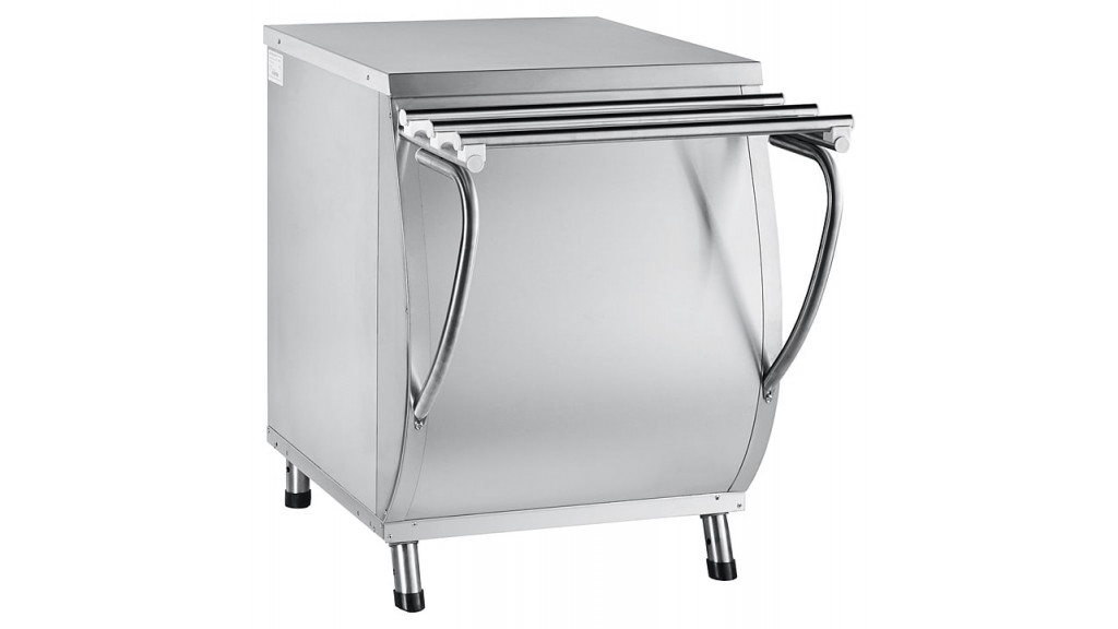 Корпус модели выполнен из нержавеющей стали и имеет форму, близкую к прямоугольной. Прибор обшит стальными листами. Передняя стенка, как и у всех элементов линии, имеет выпуклую форму, на которой расположены кронштейны с направляющими для подносов. Задняя стенка отсутствует, что обеспечивает прямой доступ к большому открытому шкафу для хранения кухонного инвентаря.