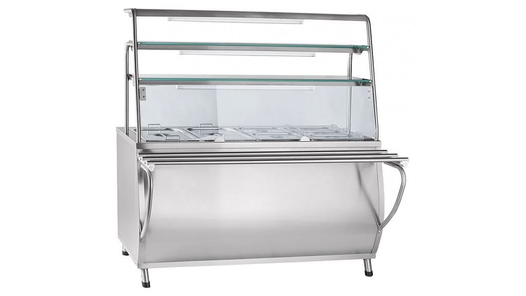 - над мармитом установлена двойная полка с подсветкой, предназначенная для размещения блюд;