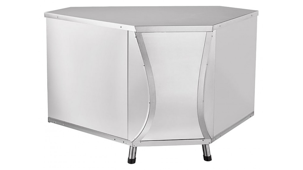 Сверху корпус накрыт плоской столешницей. Сзади установлена дверца шкафа для хранения кухонного инвентаря. Для соединения с соседним оборудованием на боковых стенках предусмотрены два отверстия. Для выравнивания высоты используются регулируемые ножки.