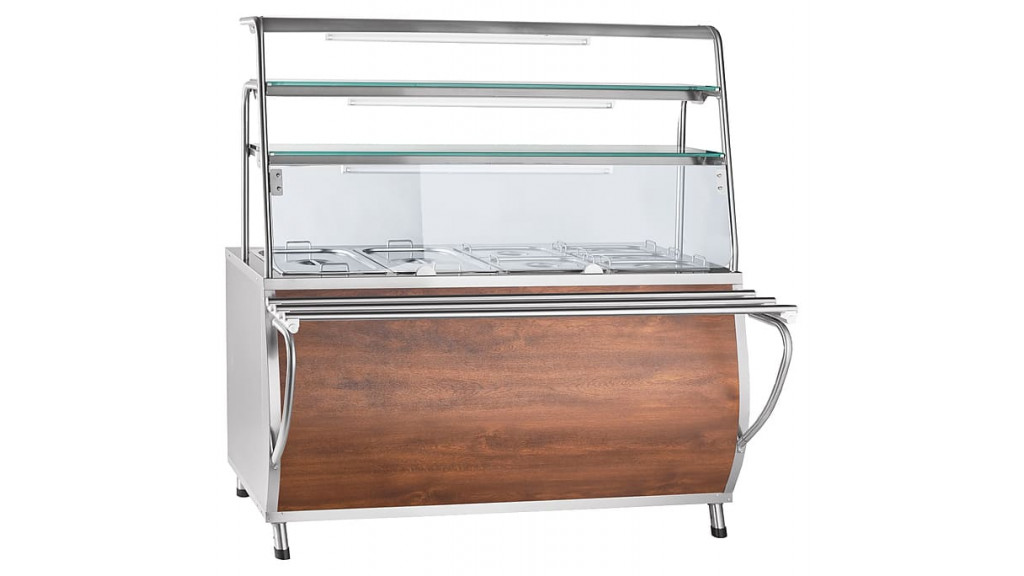 - над мармитом установлена двойная полка с подсветкой, предназначенная для размещения блюд;