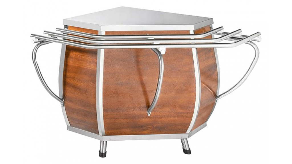 Сверху модуль закрыт сплошной столешницей. Конструкция выполнена из металла, кашированного под дерево.