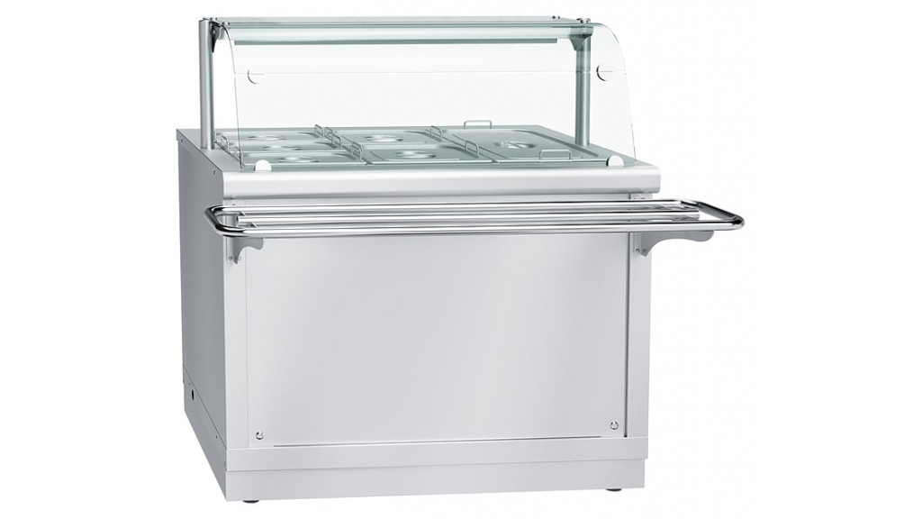 Модель оснащена двумя нагревательными элементами и ванной с гастроёмкостями для продуктов и готовых блюд.
