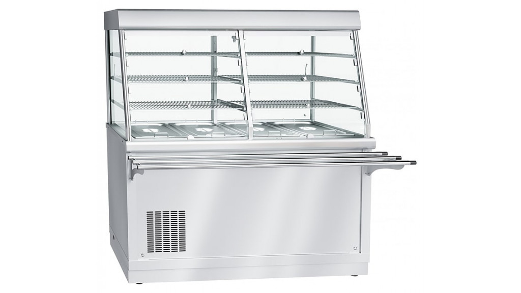 Модель имеет три вместительные полки и охлаждаемую ванну с гастроёмкостями.